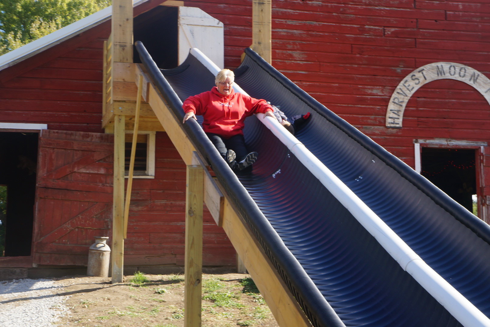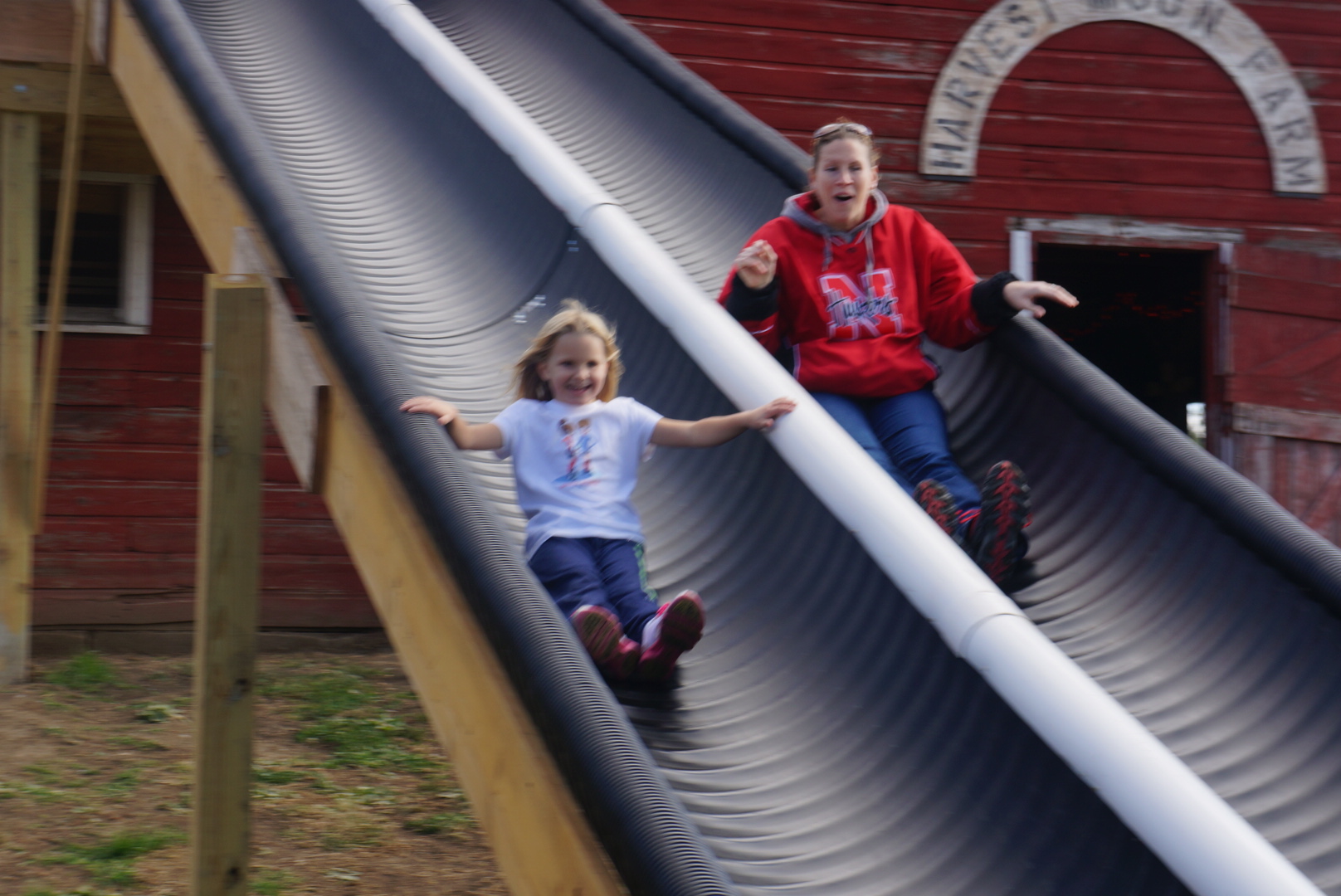 LDNE Kindergarteners and parents and yes Mrs. Beacom all went down the slide at Harvest Moon Pumpkin Patch. The zipline and other activities were also enjoyable. Photo Credit/Denise Gilliland, Editor and Chief, Kat Country Hub.