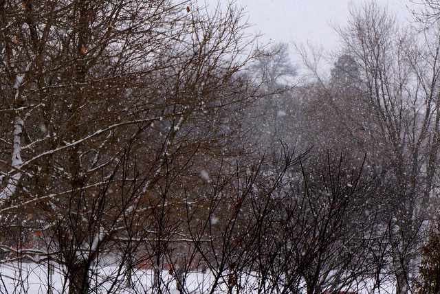 You can see the snowflakes falling in Oakland in this picture, they are larger coming down now. Photo Credit/Denise Gilliland, Editor and Chief, Kat Country Hub.