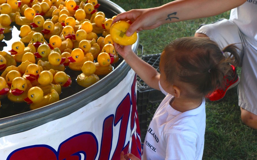 Games are also fun at the fair! Penelope Tran, daughter of Whitney and Tri Tran and granddaughter of Denise and Jeff Gilliland, enjoyed picking up ducks to win a prize! Photo Credit/Denise Gilliland, Editor and Chief, Kat Country Hub.